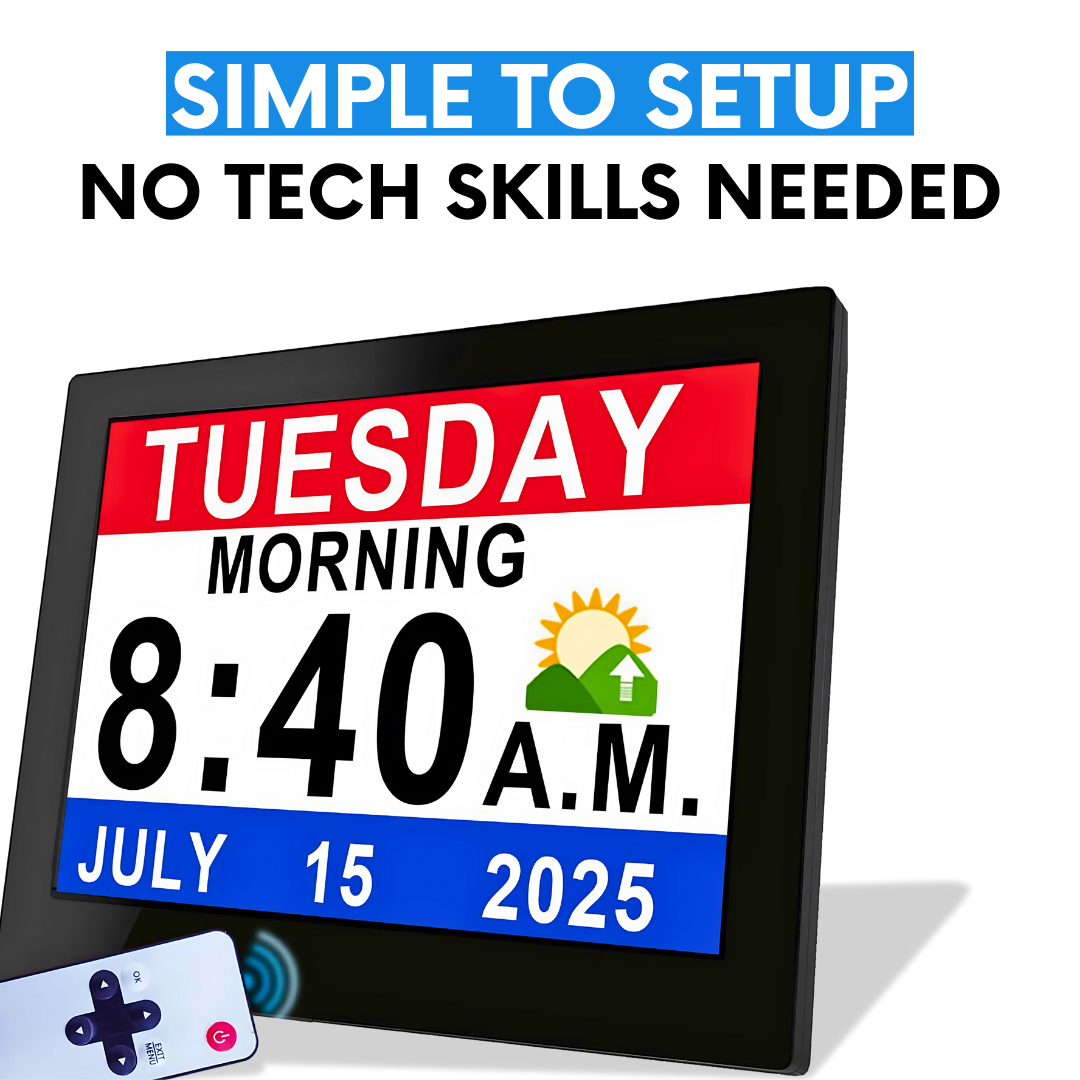 The Big Time Reminder Clock is made for ease just plug it in and it’s ready to go. With a simple remote control and clear menus, setup only takes seconds. No apps, Wi-Fi, or tech skills required.